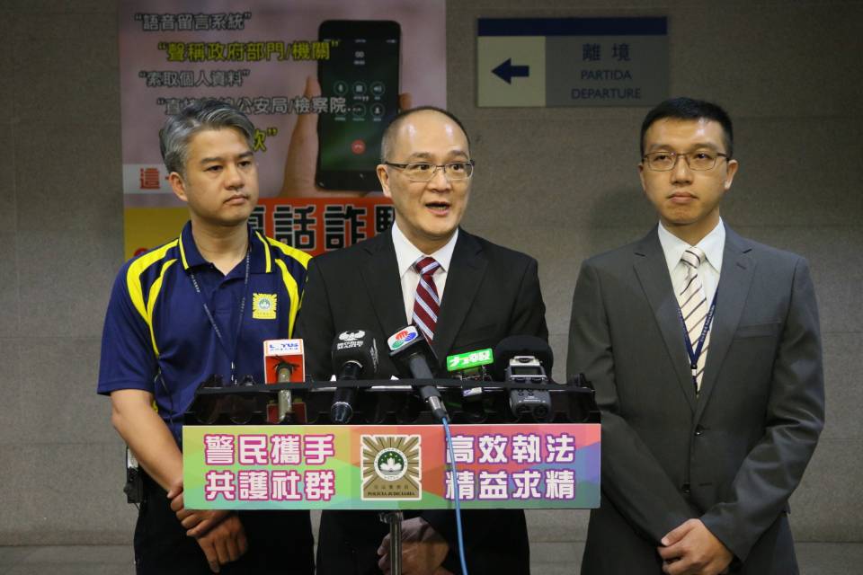 下午三點半,警方及海關人員到關閘口岸大堂張貼防騙海報。據司警博彩及經濟罪案調查廳廳長陳堅雄表示,假冒本澳政府人員的電話詐騙數字持續上升,自今年7月20日至8月16日,海關、治安警及司警共接獲2894宗舉報和查詢,當中49宗有損失,合共損失約澳門幣一千二百五十萬元。