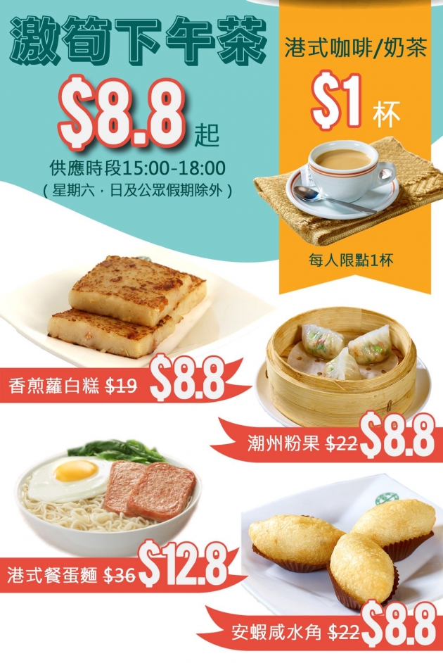添好運推出下午茶優惠,$1 咖啡/奶茶、$8.8 香煎蘿白糕,仲有其他野食都有優惠!