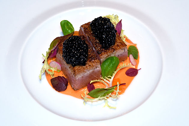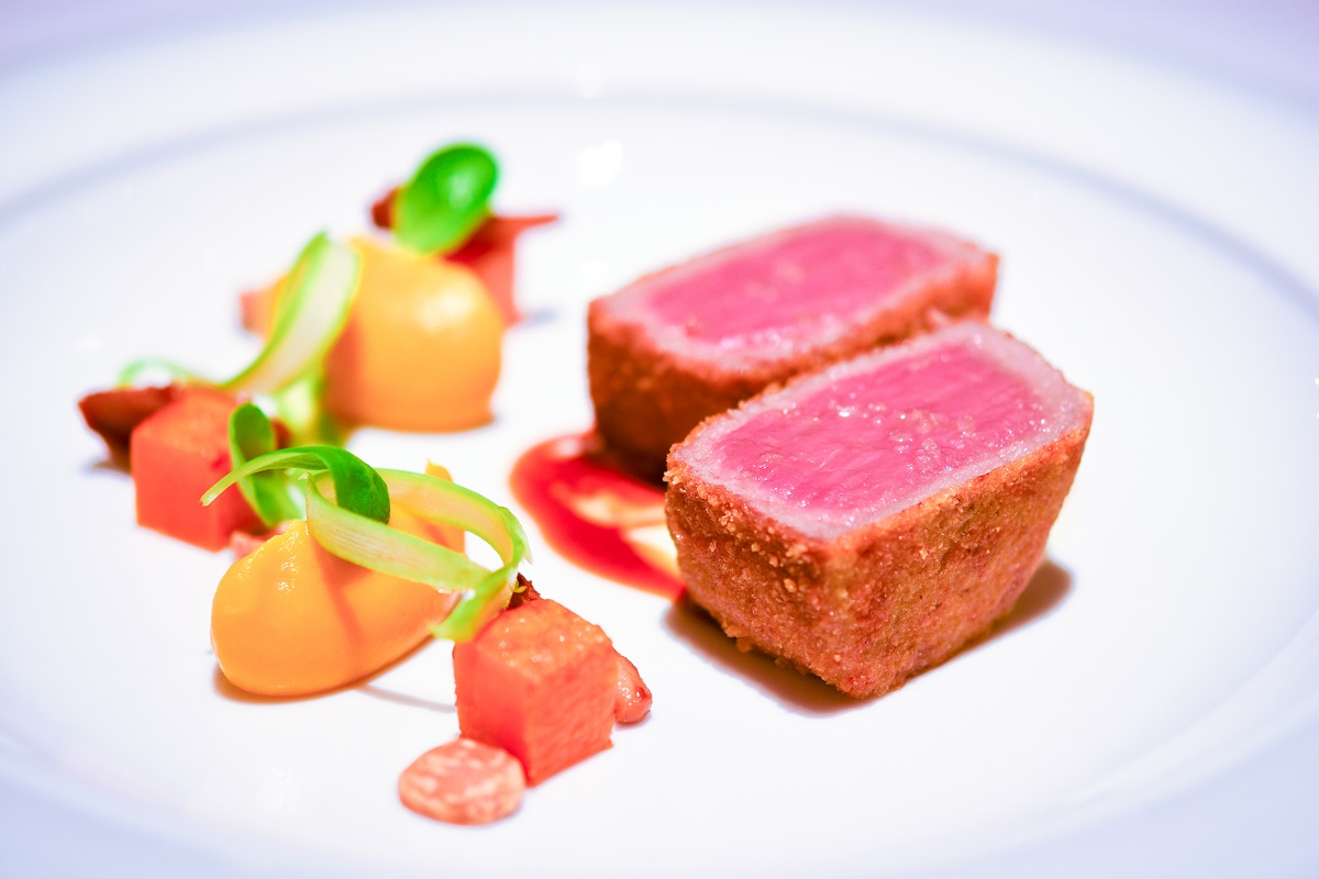 由於餐牌上選擇眾多,因此主廚Antimo建議我們選擇套餐。他還說道:“有一些Bombana的特色菜是不可以錯過的,像吞拿魚和Burrata,都是Bombana的招牌菜式之一,很多顧客都慕名而來。”品嘗過照燒紅吞拿魚配茴香花粉、番茄和魚子醬,你就會知道為什麼這些菜色會成為招牌菜。