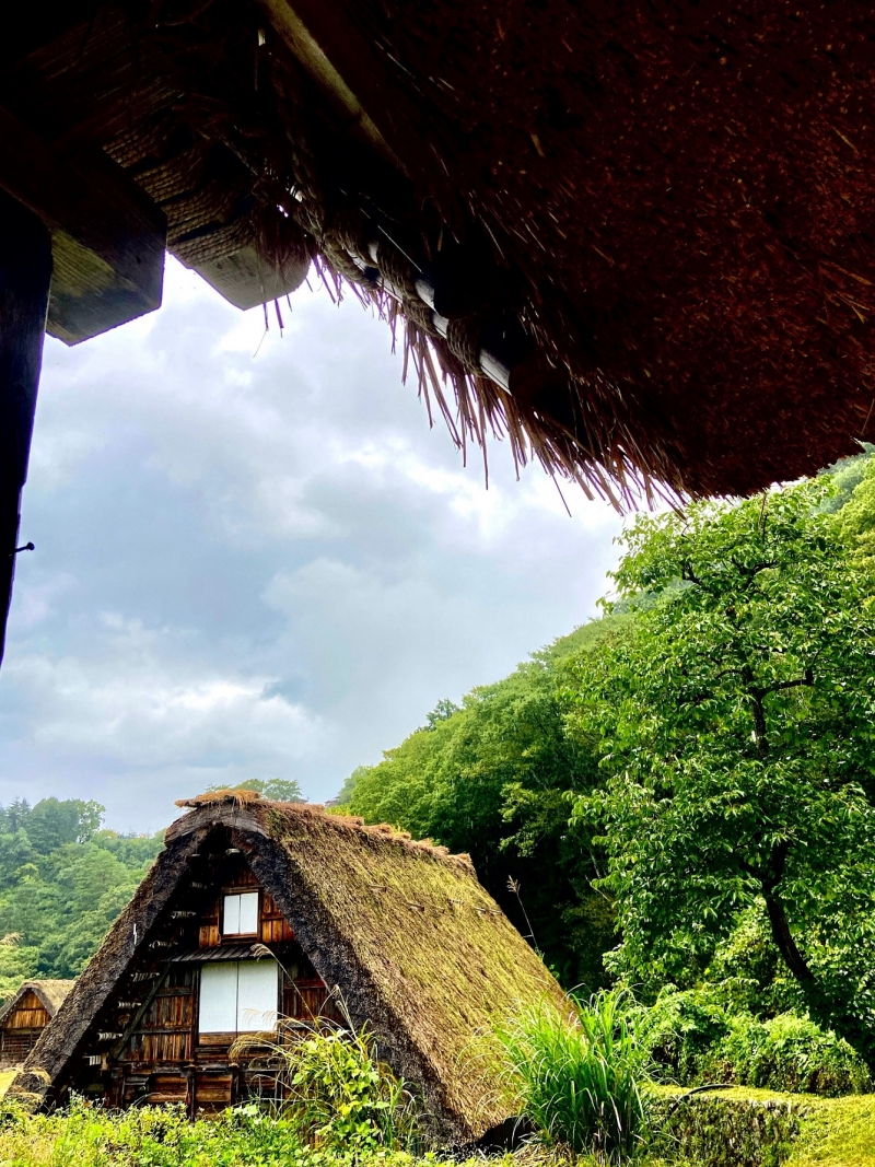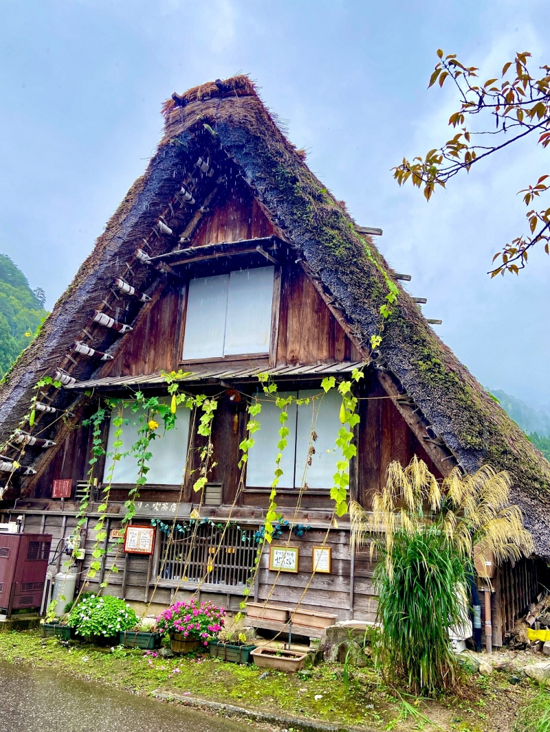 還有那裡獨特一座座三角形茅草屋頂傳統合掌造房屋,