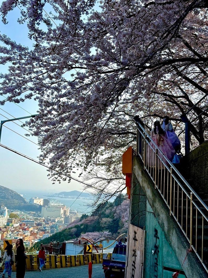 亦正是釜山櫻花熱烈綻放的時候,