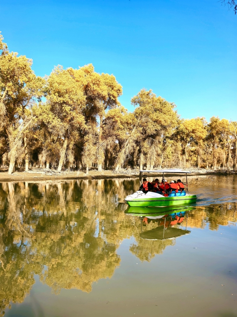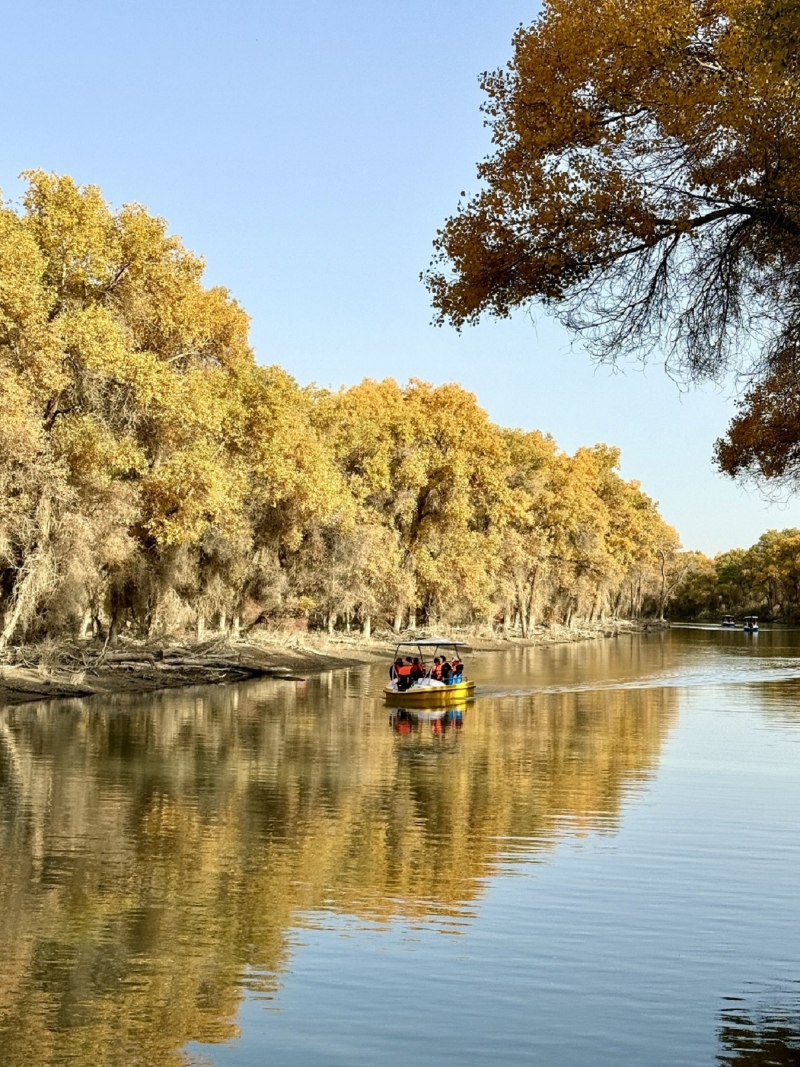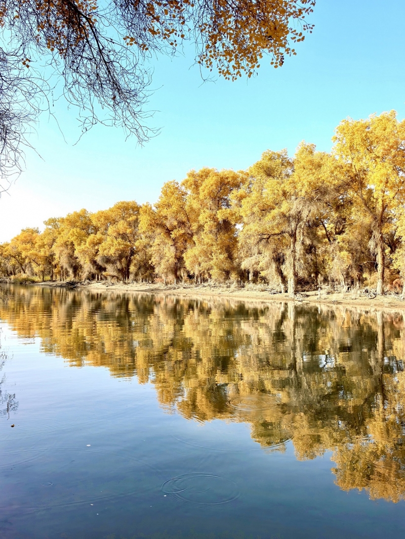 鳴啼於湖面和林中、六看金色胡楊把塔裡木河兩岸妝點得如詩如畫、