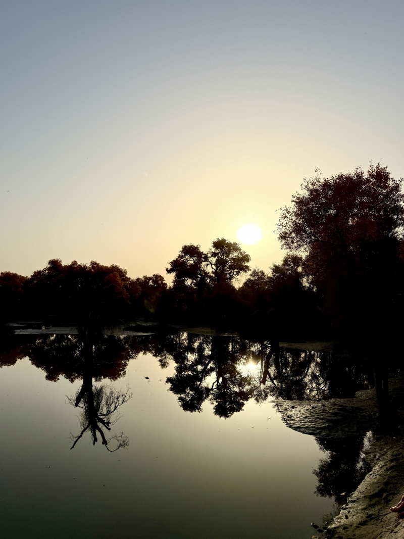 胡楊園內外塵土飛楊, 不時為黃葉舖上粉塵濾鏡,